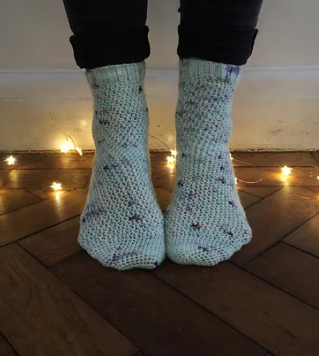 Eira Socks are the sixth of a six sock pattern collection for The Crochet Sock Club 2017 a bi monthly crochet subscription for lovers of crochet socks and hand-dyed yarns.