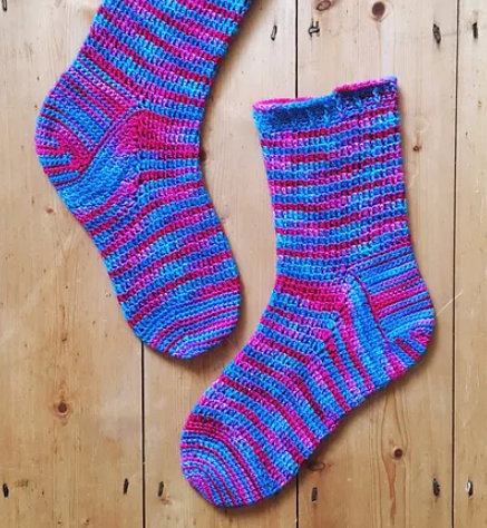 Birgitte Socks are the fifth of a six sock pattern collection for The Crochet Sock Club 2017 a bi monthly crochet subscription for lovers of crochet socks and hand-dyed yarns.